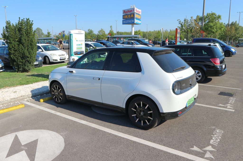De láss csodát, az ötödik gyorstöltő már valóban működött. Miközben bent az Auchan büféjében megírtam ezt a cikket, a Honda a parkolóban fel is szippantotta azokat a kilowattórákat, amikkel haza bírok menni a csupán 2,4 kilowattal, de azzal tényleg, és csupán 43 forintos kWh-nkénti áron töltő otthoni jó öreg 230 voltos konnektoromig.