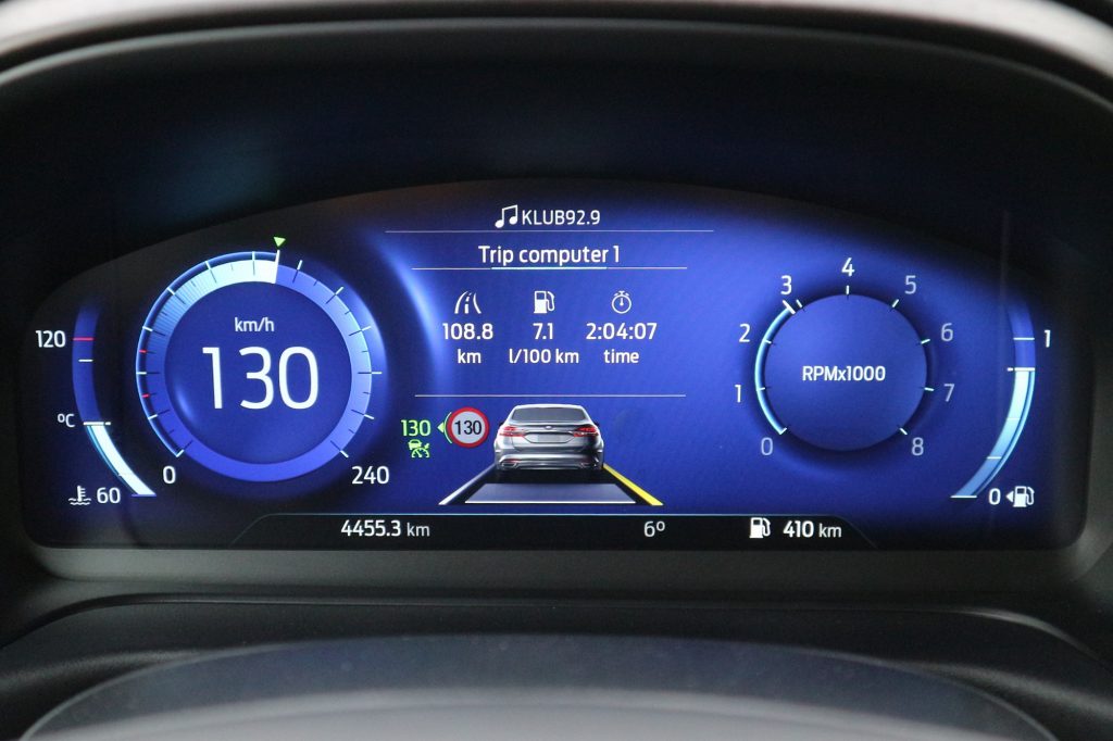 Nem is sorolom végig az összes vezetéstámogató funkciót, csak a legérdekesebbet emelem ki. Miszerint: a tempomat képes átvenni a táblafelismerő rendszer által detektált sebességkorlátozás értékét, sőt: a menübe be lehet állítani némi tűrést is, ha valaki 50-nél 40-nel, 90-nél 80-nal érzi inkább komfortosan magát. Más irányú eltérésre természetesen mi gondolni sem merünk, de a Ford mert, így azt is meg lehet beszélni a rendszerrel, hogy a 90-es korlátozásnál automatikusan 100-ra álljon be, például.