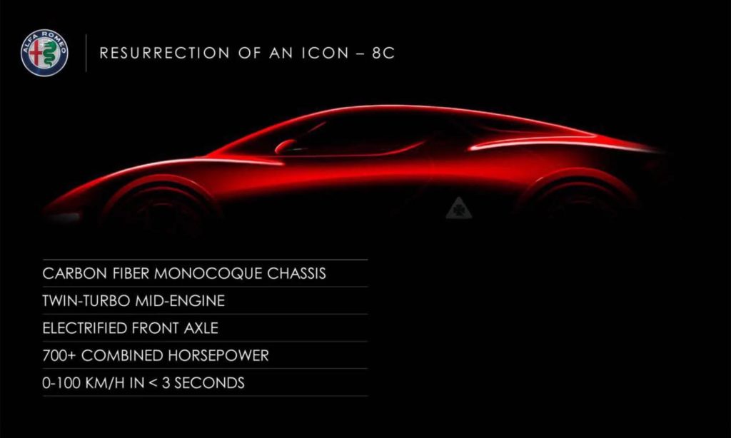 A másik újdonság még érdekesebben hangzik, hiszen a 8C utódjáról van szó. Amíg a négyhengeres 4C még Porsche-ellenfél volt, addig a szintén kétüléses, szénszálas anyagból épült, középmotoros 8C már a Ferrari és a McLaren vadászterületére téved. A biturbó V6-ossal és elektromos hajtással 700 lóerős lesz, amivel három másodpercen belül gyorsul százra.