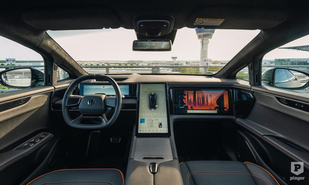 a 97 kilowattórás akkumulátorral 460 kilométer a hatótávja, méghozzá a szigorúbb WLTP mérés szerint. Belül tele van kijelzőkkel, a 14 colos műszeregység és a 16,9 colos infotainment mellé az első utasnak is jutott benne egy 19,9 colos képernyő.
