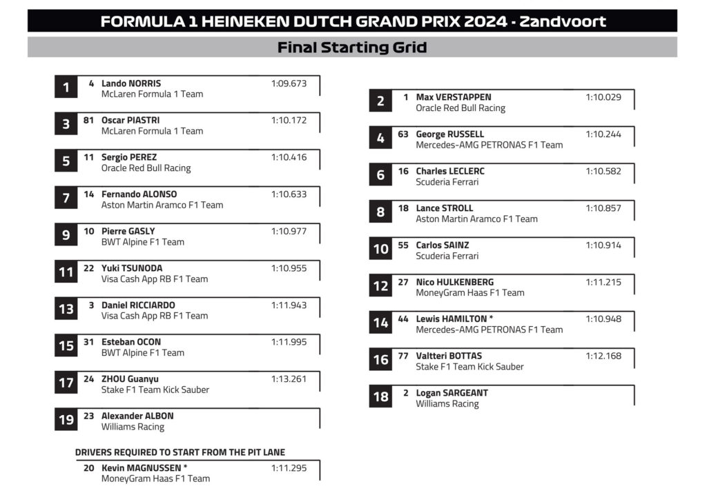 Lando Norris elvitte a hazai pályán versenyző Max Verstappen elől a pole pozíciót a Holland Nagydíj időmérőjén – a végleges* rajtrács: