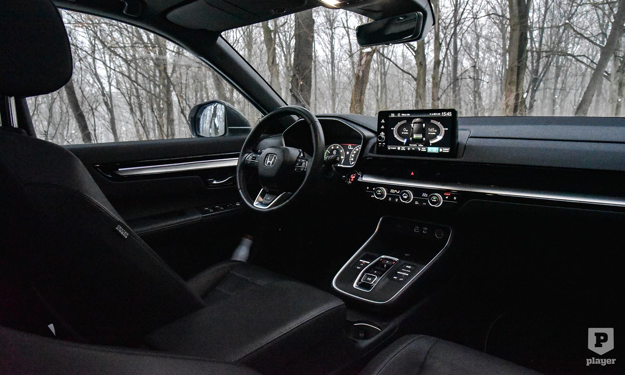 A CR-V viszont okosan kezeli a helyzetet. Ha éjszaka töltőn áll, reggelre az állóhelyzeti fűtés már tisztán villanyról felmelegíti az utasteret, leolvasztja a jeget, és úgy indulhatsz el, mintha egy klasszikus villanyautóba ülnél be. Ilyenkor még a legnagyobb hidegben is EV-módban kezd, a benzinmotor csak akkor szól bele a történetbe, ha hirtelen nagy gázt adsz – mondjuk egy előzésnél –, vagy ha 130 fölé csúszik a tempó. Hidegben annyi különbséget érezni, hogy a rendszer kicsit hamarabb kér rásegítést a benzines oldalról, de