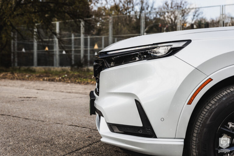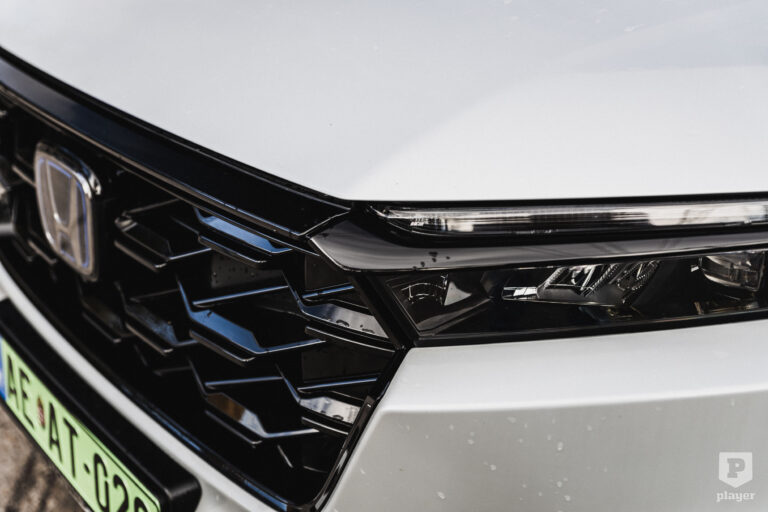A magasan lévő motorháztető lehetőséget adott egy jókora hűtőmaszk kialakítására, és a hondások éltek is ezzel: a szűkre metszett fényszórókkal együtt sem agresszív az autó megjelenése, sejteti viszont, hogy valamilyen nagyobb, több hűtőlevegőt igénylő motort hord az orrában.