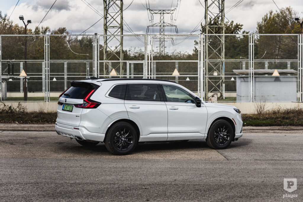 Ha nem is olyan különlegesen karakteres, de egyedibb az oldalnézet. Itt is hatalmasak a lemezfelületek, a 18-as felnik és a silány magyar utakhoz különösen ajánlható ballonos gumik is kicsinek látszanak az autón, amely több mint tíz centivel hosszabb az előző, ötödik generációnál, immár 4,7 méter fölé nyúlik. Elsősorban a magassága miatt titkolja ennyire jól a CR-V, hogy a Honda alapvetően sportos márka – teljesen más lenne a stílusa, ha kicsit alacsonyabb volna: