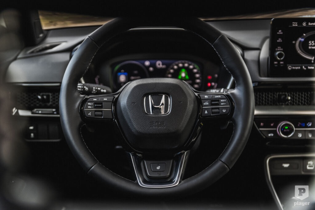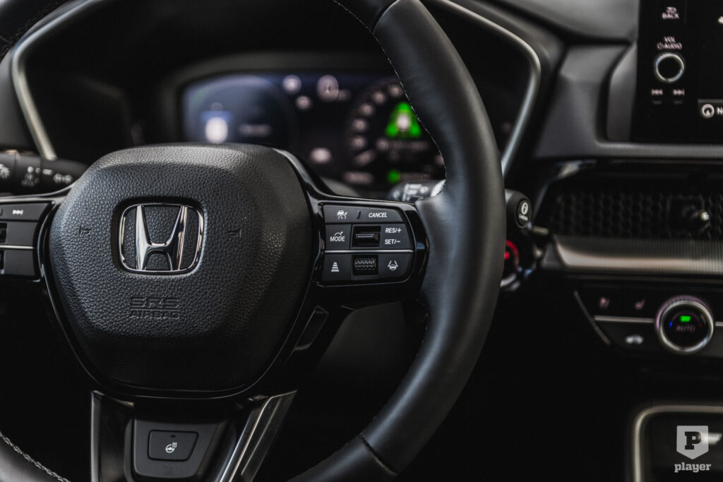 Zavaró elemnek épp elég a menetválasztó furcsa egysége, amely biztosan megszokható, de egy hét alatt nem érttette meg velem, miért jobb, mint ez az elrendezés, mint egy hagyományosabb. Ugyanezt az alkatrészt találjuk más Hondákban is, a CR-V-nél annyival sikerült rontani a helyzeten, hogy a rögzítőfék és a vezetésimód-választó billenőkacsolói közé helyezték. Előfordult, hogy hátramenetbe kapcsolás helyett véletlenül a féket húztam be, ami valószínűleg velem sem fordulna elő, ha folyamatosan ezt az autót használnám, de szintén valószínűleg lesz még más is a típus leendő több százezer vásárlója közül, aki mellényúl.