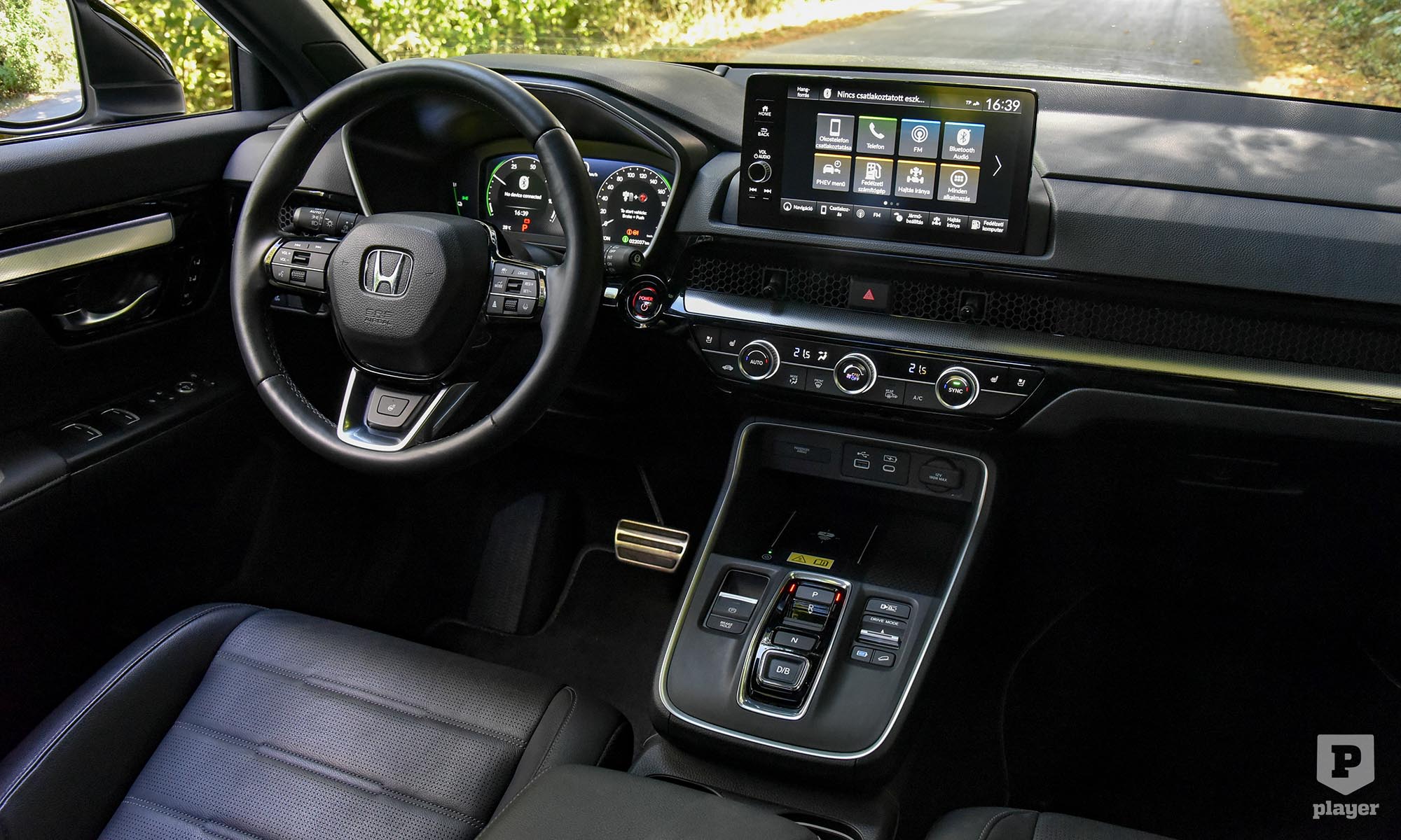 Járt már nálunk a HR-V, a ZR-V, az e:Ny1, most pedig itt a legnagyobb Honda, a CR-V. Ez a márka kínálatának teteje, és egyben az a típus, ami világszerte elképesztő népszerűségnek örvend. Európában valamiért mégsem lett akkora sztár – talán túl józan, túl hétköznapi, nincs meg benne az a plusz, amitől a kontinentális autóvásárló szíve gyorsabban ver. Pedig lenne miért szeretni. Tágas, kényelmes, biztonságos, és ha plug-inként használjuk, akkor a városi rohangálásokat simán letudja tisztán elektromosan. 17,7 kWh kapacitású az akkumulátor, amit otthon esténként a 11 kW-os töltőről 2-3 óra alatt könnyen tudok feltölteni. Sima 230-as konnektorról is kényelmesen feltölthető egy nyolcórás alvás alatt.