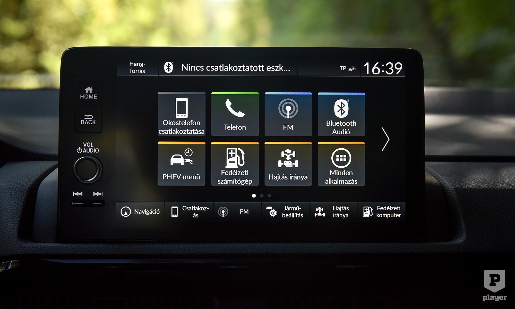 A fedélzeti rendszer… nos, van. Ez a legdiplomatikusabb megfogalmazás. Működik, de nem mindig úgy, ahogy szeretnéd. Például nem árulja el, hogy elektromosan pontosan mennyit fogyaszt. A kijelzők grafikájának a fejlesztése sem szerepelt a legfontosabb feladatok között, de például az Apple CarPlayt csatlakoztatva a Google Maps navigációja a műszerfalon is megjelenik, ami elég sok márkánál nem egyértelmű.