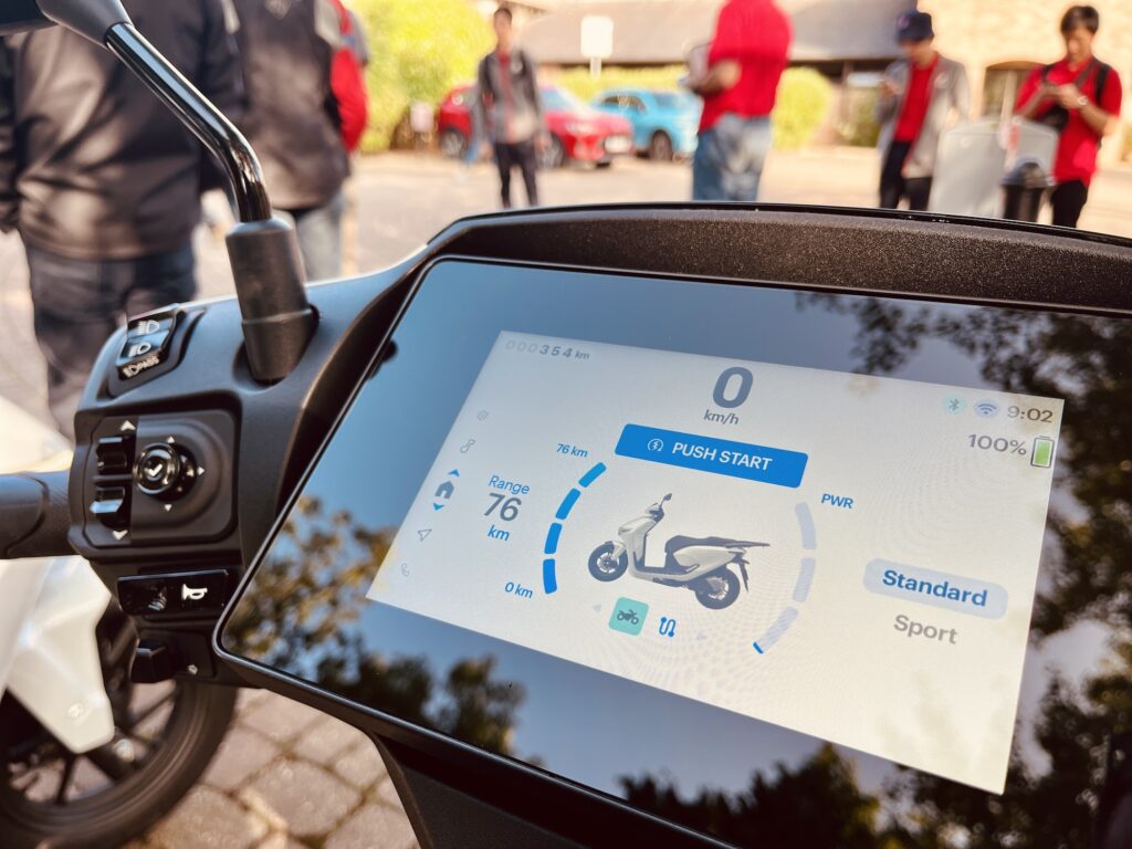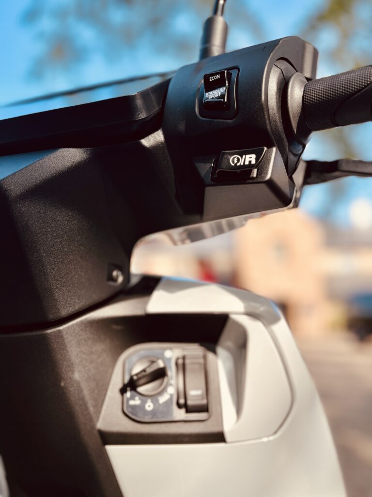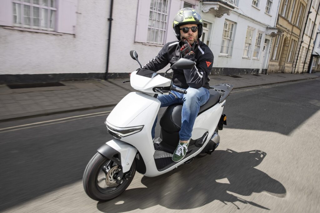 Ez a (technikai információ szerint) nagyjából 125 cm³-es benzines motornak megfelelő teljesítménnyel felérő, 6 kW-os elektromotor városi használatra, vagy közeli ingázásra megálmodott jószág. Korrekt agilitással és feszes futóművel áll a rendelkezésünkre, mind a gyárilag 76 kilométer körül ígért hatótávjával, 83 km/h-s végsebességével. Három mód közül választhatjuk ki, mennyire akarunk takarékoskodni az energiával, vagy másképp mondva, mennyire szeretnénk dinamikusan közlekedni vele: Econ(omical), Standard és Sport módokban tudjuk élvezni a gyorsulást. Ha lemerülünk, az akksikat az ülés alól kipattintva már vihetjük is tölteni. 6 órát kér a 0-100% körért, de ha beérjük 75%-ra töltéssel, akkor már 3 óra mellőzéssel megvagyunk.