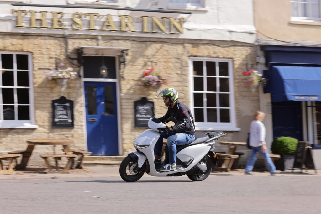 A sajtótájékoztatón megtudtuk, hogy még csak a forradalom elején járunk, a Honda 2040-re a teljes motoros palettát elektromosra cseréli, vagy ahogy ők mondják, karbonsemlegessé teszik. 28 éve ülök motoron, egy-, két- vagy négyhengeres, kettő vagy négyütemű gépeken, számomra a robbanómotor hangja, füstje, rezgései egyet jelentenek a motorozással. De vajon egy városi robogó esetében kell-e a durrogás, kell-e a füst, kell-e a benzinmotor? Motorozást, vagy közlekedési segítséget várunk-e egy robogótól? Élményt vagy szolgálatot? Ezeken gondolkodtam, miután a villanycsikó nyergébe pattanva, kellemes 24 fokban átsuhantunk a vidéki Anglia középkori utcáin.