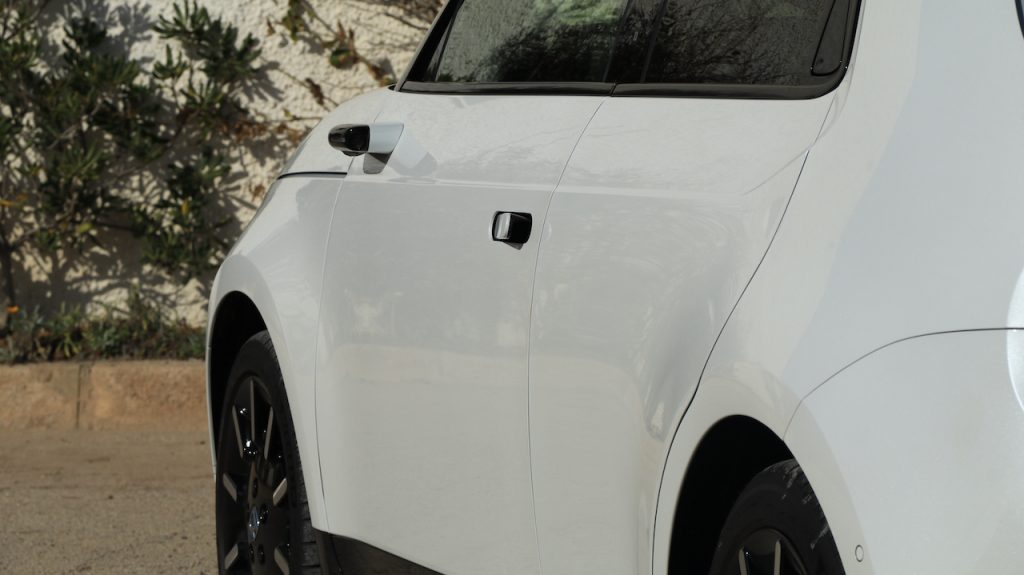 Kezdjük ott, hogy nincsenek kilincsek, illetve vannak, de azok motorral bújnak elő a karosszériából, a hátsó ajtókon pedig rejtve maradnak a feketére fényezett felületen. Mert ugye ezzel lehet elhitetni a szemmel, hogy háromajtós kisautót látunk, pedig nem is. Aztán jön a csoda következő fázisa, az ajtókat kitárva mintha egy dimenziókapu nyílna fel előttünk. És nem, ez nem csak a világos színek, az ügyes üvegfeleletek és a lounge hangulat kombinációja, ez az autó tényleg olyan tágas belül, mint a kifutó Jazz. Rendben, a csomagtartóban már csak kéttáskányi hely van, de vegyük figyelembe, hogy ide került a motor, az akkumulátorok pedig a padló alatt figyelnek.