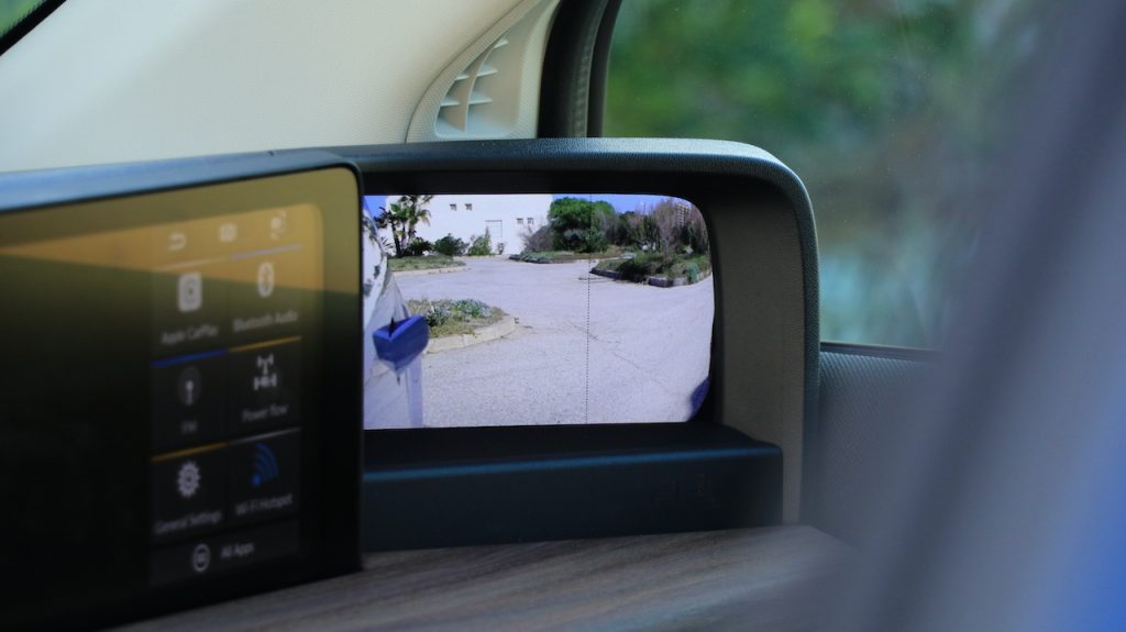 Hol is kezdjem? Feltűnhetett, hogy nincsenek visszapillantók az ajtón, apró kamerák kerültek a helyükre, a hozzájuk tartozó monitorok a kijelzősor szélein ülnek. Néhány perc megszokni, hogy máshol kell keresni a „tükröt”, de ha ezzel megvagy, nem lesz gondod vele. Előzéskor például segédvonalakkal érzékelteti, hol az autó vége, és mekkora kábé mögöttünk egy autónyi hely. Pofonegyszerű előzni, gyorsan sávot váltani. A belső tükör is kamerás (a jobban felszerelt modellben), de érdekes módon ezt nehezebben szoktam meg.