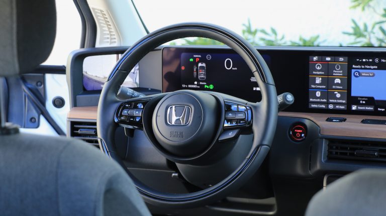 Négy méternél rövidebb, 4,3 méteres a fordulókör sugara, és teljes mértékben városi használatra szánták. Ezért sem tettek bele böszme nagy akkumulátort, hanem a Mini Electrichez és a Mazda MX-30-hoz hasonlóan 222 kilométeres hatótávot tudó 35,5 kW-os akkumulátort kapott a Honda e. Igen, értem,