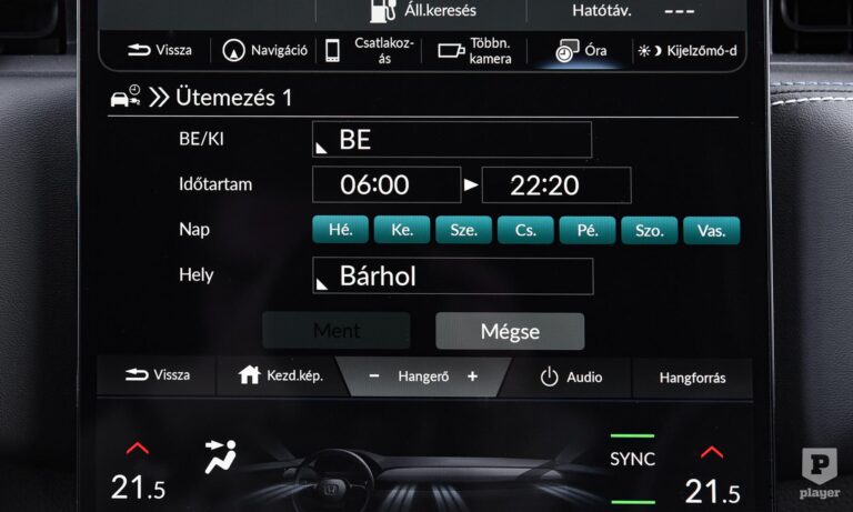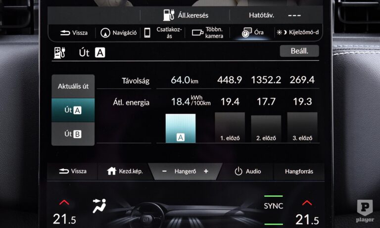 A másik két képernyőrész viszont kicsit kaotikus, könnyű elveszni a menüben, és mintha arra se ment volna sok energia, hogy a különböző képernyőrészleteket egységes stílussal, betűkkel tegyék jól használhatóvá. De aztán telnek a napok, meg a kilométerek, és szépen hozzá lehet szokni, az ember egy idő után nagyjából tudja, hogy mit hol talál, és elboldogul vele. A gyári navigációt viszont nem sikerült megkedvelnem, szerencsére vezeték nélkül, CarPlayen keresztül működik a telefonos navigálás, ami teljesen rendben van.