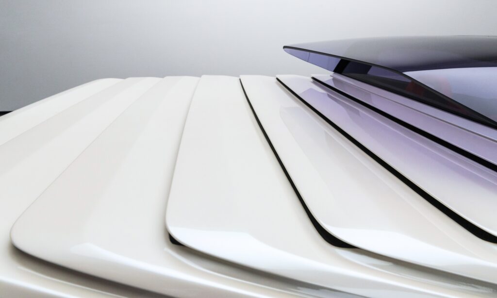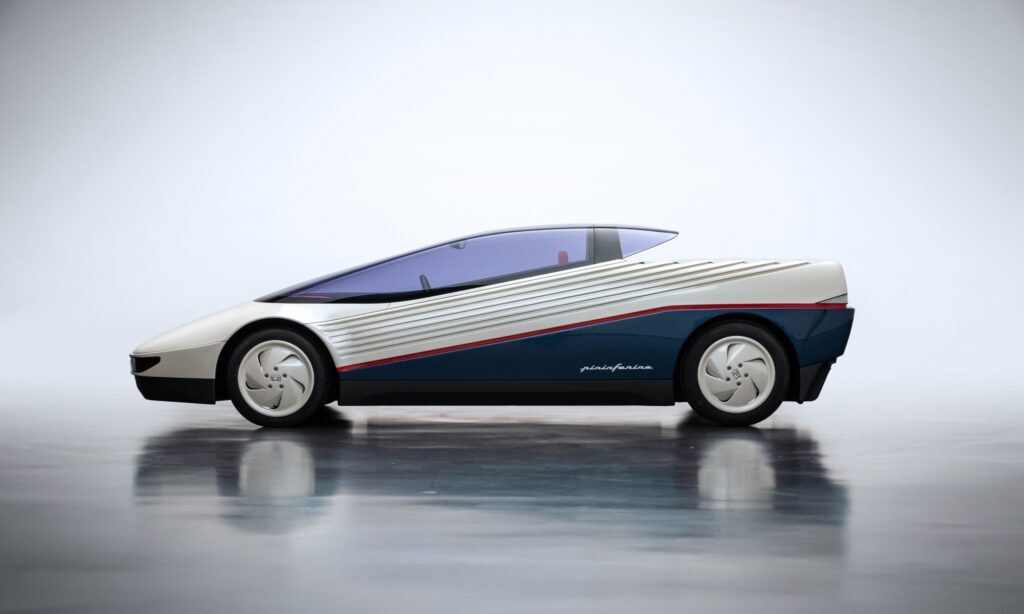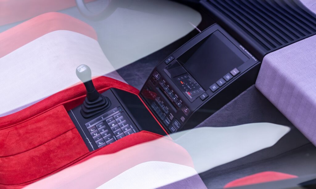 Lapos orra van és a kétszínű fényezéssel, valamint az autó hátuljára felfutó bordázattal még hangsúlyosabb is lett, hogy mennyire ék alakú a HP-X. Nincsenek tetőoszlopok, de hagyományos értelemben vett tető sem, ezért minden irányból be lehet látni a piros utastérbe, ahol a kétküllős kormány mögött és a középkonzolon is kijelző van, mint a modern autókban. A tanulmányautóban navigációs rendszer és valós idejű telemetria is van, de útviszonyokra figyelmeztető jelzések is megjelennek. Mindezt annyira jó stílusérzékkel tálalva, hogyha tényleg ilyen volna a mostanra megvalósult jövő, akkor nem bántana ennyire senkit a képernyőkkel tömött műszerfal.