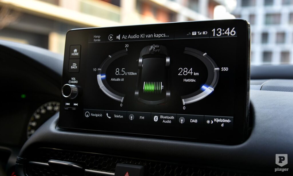 A Honda itt most szerencsére nem ragaszkodott az érintőképernyőre mindent elvhez. Vannak igazi, kézzel fogható, kattogó gombok a klímához, hangerőhöz, üzemmódokhoz – nem kell az érintőképernyő menüjének mélyébe ásni, hogy bekattintsd az ülésfűtést vagy kormányfűtést (utóbbit mondjuk azért, mert nincs). Értintőképernyő van persze a ZR-V-ben is, de ez a navigációt vagy a telefontükrözést oldja meg, és az autó alapfunkcióit kezeli, amik között nem mindig könnyű eligazodni. Túlzott szigorításnak tűnik az is, hogy a funkciók többsége csak álló helyzetben, „P” állásnál érhető el.