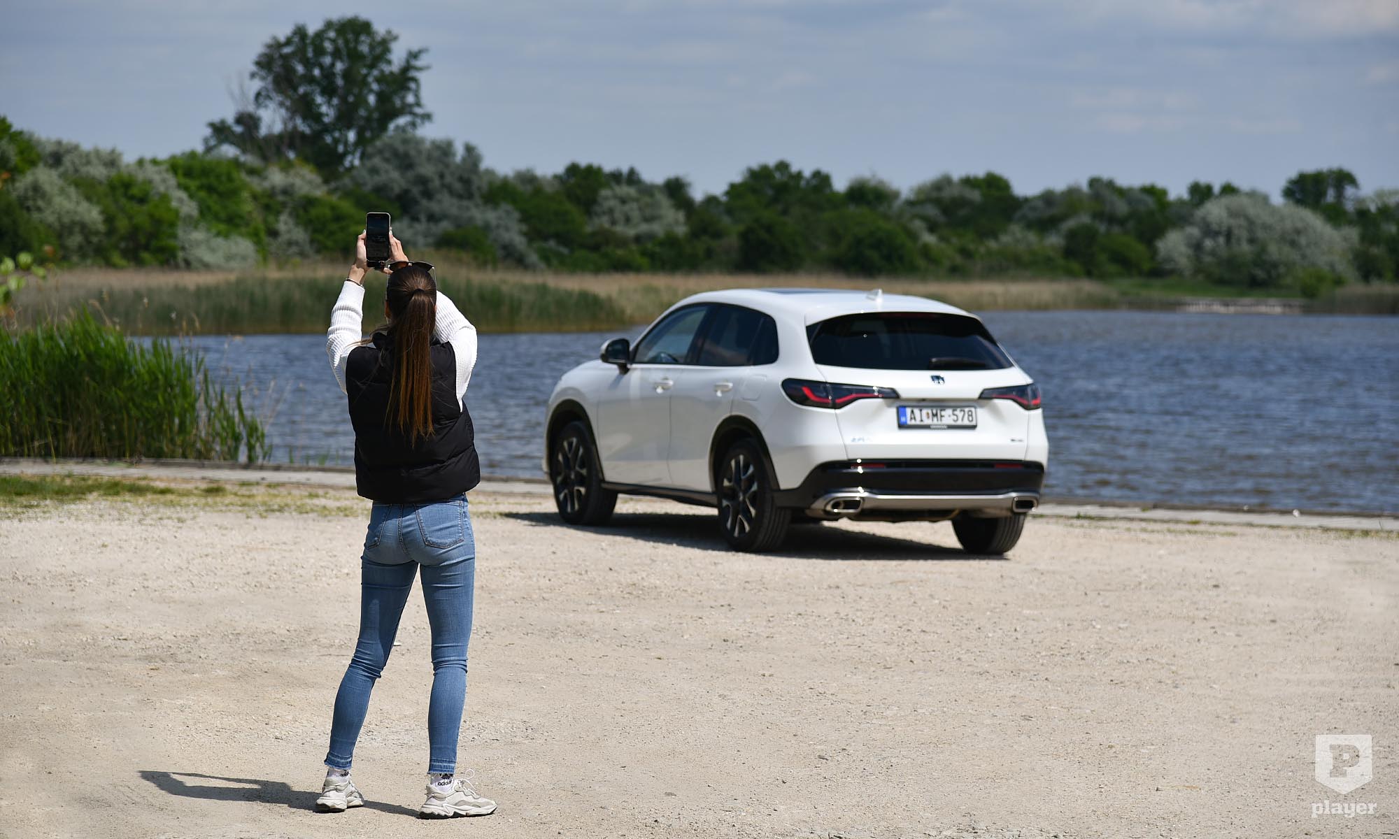 Persze ne egy Civic Type R kiélezett vezetési élményére számíts, de a ZR-V-t is kimondottan kellemes vezetni. Az elektromotor azonnal elérhető 315 Nm nyomatékával mindig rajtra kész, a Hondától megszokott módon a kormányzása precíz, a futóműve jól hangolt. Nem terepjáró, nem is összkerekes, de 18 centis hasmagasságával nyugodtan lemerészkedhetsz vele az aszfaltról, a földúton sem fog zavarba jönni