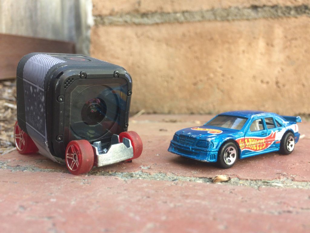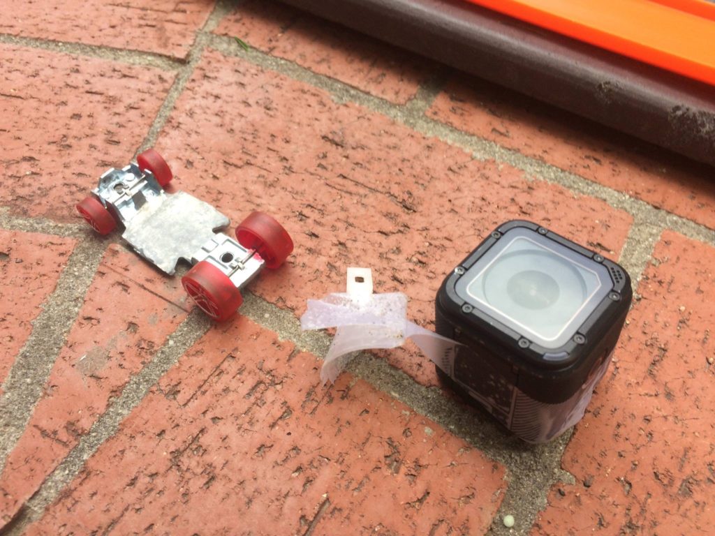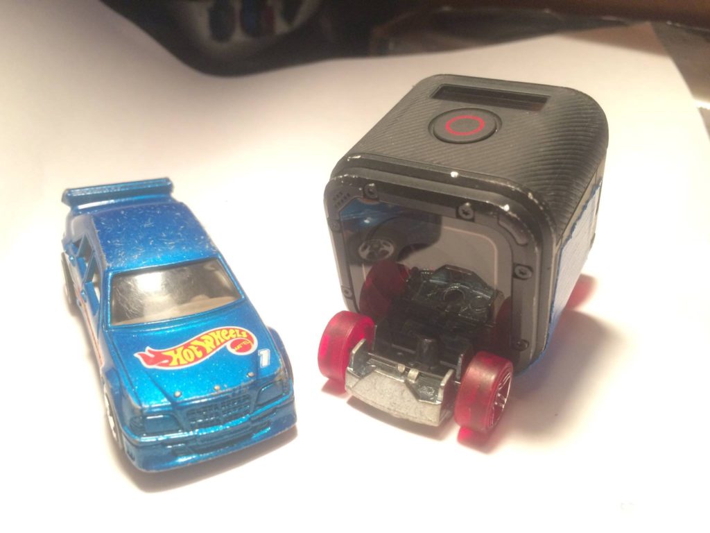 De hogyan vette fel a manővereket ilyen közelről? Most erre is megmondjuk a választ. Pofonegyszerű és zseniális az ötlet: egy Hot Wheels kisautót keresztezett egy GoPro kamerával. Fogta a kisautót, leszerelte a karosszériáját, és annak alapjára erősítette az akciókamerát. Elég jól sikerült a prototípus, hiszen ugyanolyan jól ugrat, mint a gyári kisautók.