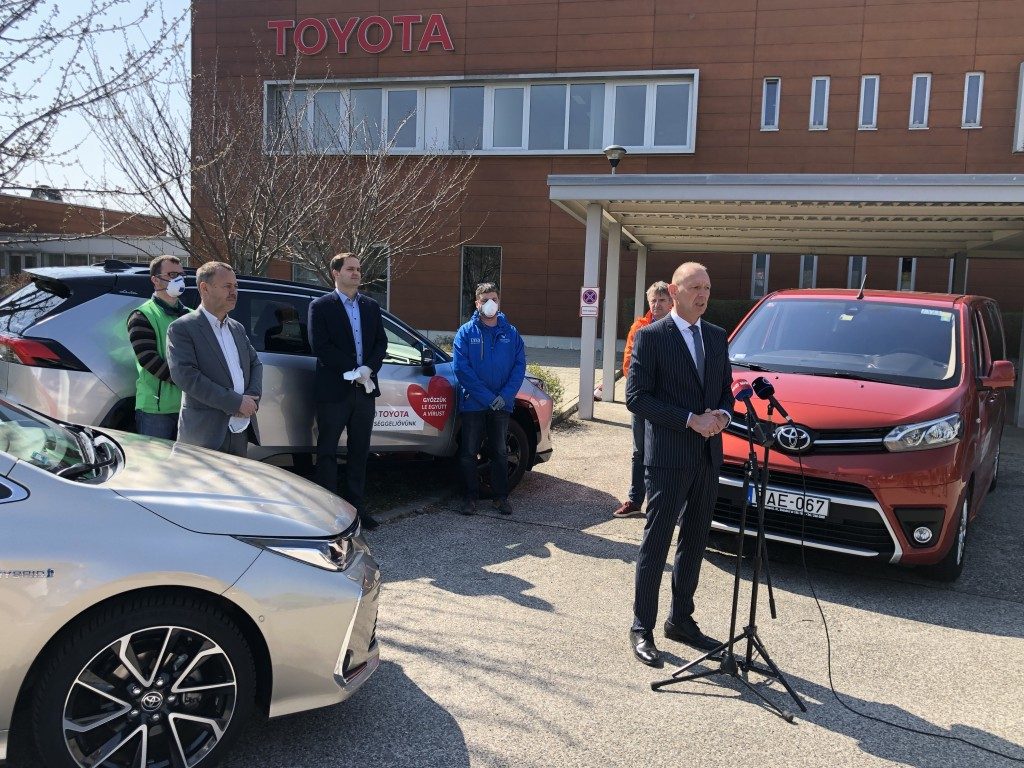 Nagylelkű felajánlással segíti a koronavírus elleni küzdelmet a magyarországi Toyota Central Europe Kft. – jelentette be Révész Máriusz országgyűlési képviselő, az Önkéntességért és adományokért felelős akciócsoport vezetője április 6-án, hétfőn Budaörsön, a cég központjában, miután Magyarország egyik vezető autópiaci szereplője, a Toyota, és hazai márkakereskedői hálózata 20 autót ajánlott fel használatra a koronavírus járvány elleni védekezési feladatok támogatására.
