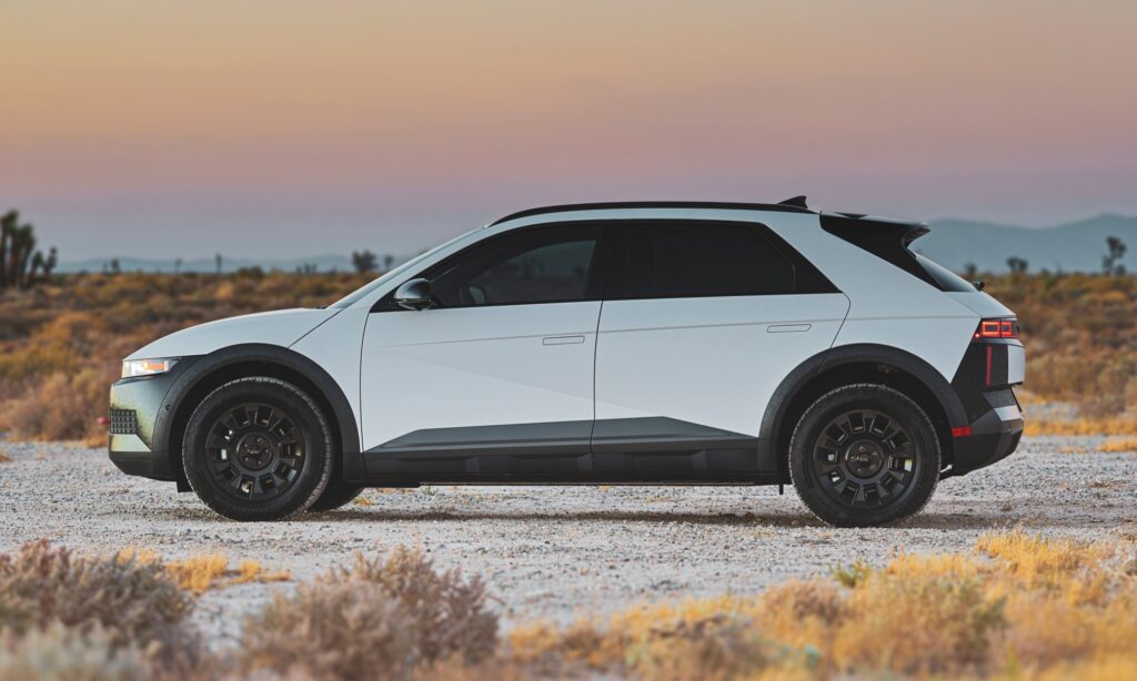 Emelet hasmagassággal, terepre szánt gumikkal és fekete műanyag lökhárítókkal a Hyundai Ioniq 5 XRT nem ijed meg a járatlan utaktól.