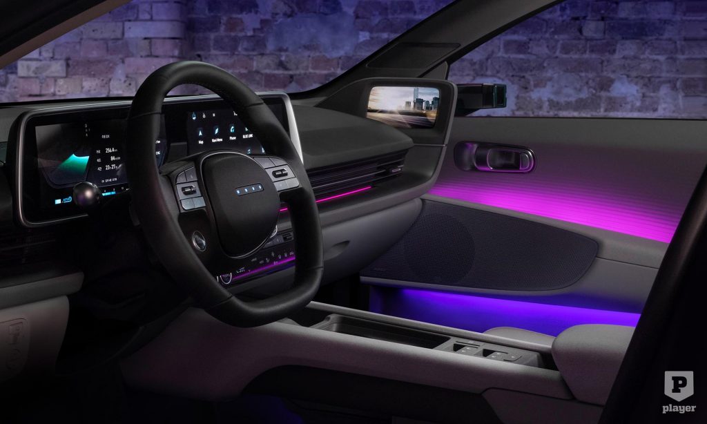 További különleges megoldás, hogy a kamera házába rejtették az oldalsó irányjelzőket, a fényszórók pixeljei pedig az Ioniq 5 hasonló megoldását idézik.