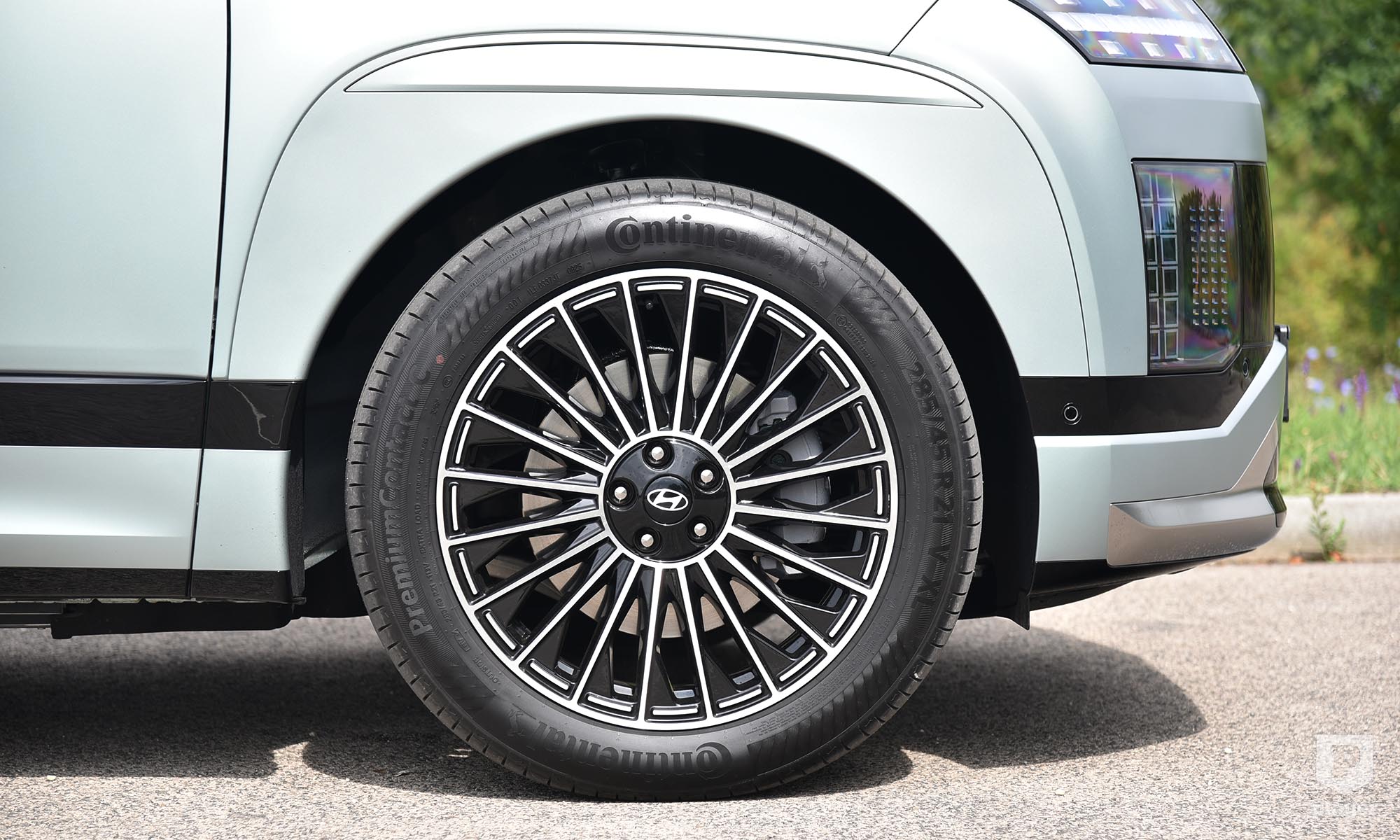 Hatalmas, de ez nem jelenti azt, hogy ne lenne hatékony, és a tervezők becsületére legyen mondva, mindent megtettek, hogy minél áramvonalasabbra faragják a karosszériát. Szinte a teljes orrát simára burkolták, csak a lökhárítóba kerültek aktív légbeömlő-lamellák. A tető ívelten lejt hátrafelé, a farát pedig meredeken elvágták, ami a Kamm-formát idézi. Az eredmény bámulatos 0,259-es légellenállási együttható, ez még az Ioniq 5 0,288-as Cw-értékénél is sokkal jobb.