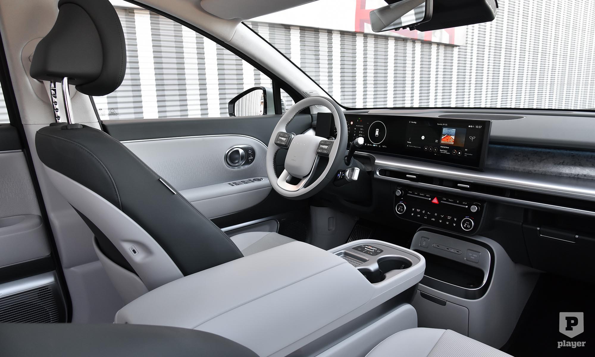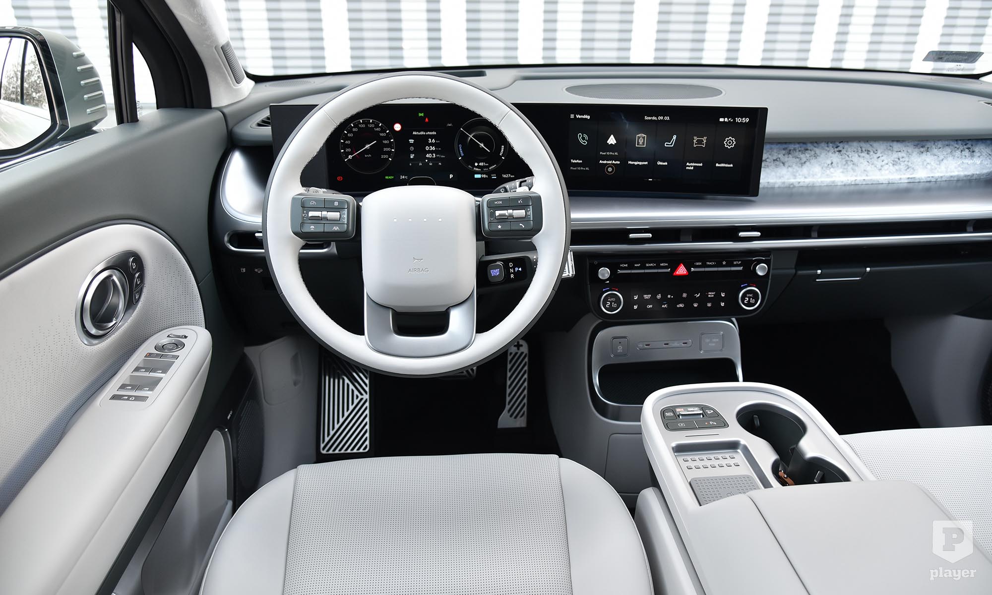 Minden ismerős lesz a kormánykerék mögött, hiszen az Ioniq 5-ben megszokott berendezést kapjuk, egy emelettel magasabb kiadásban.