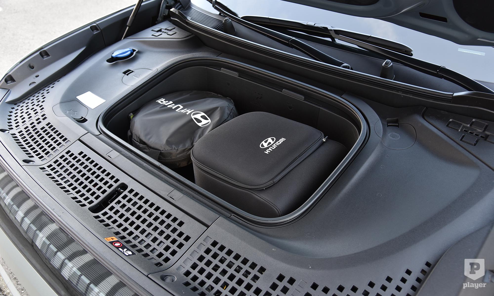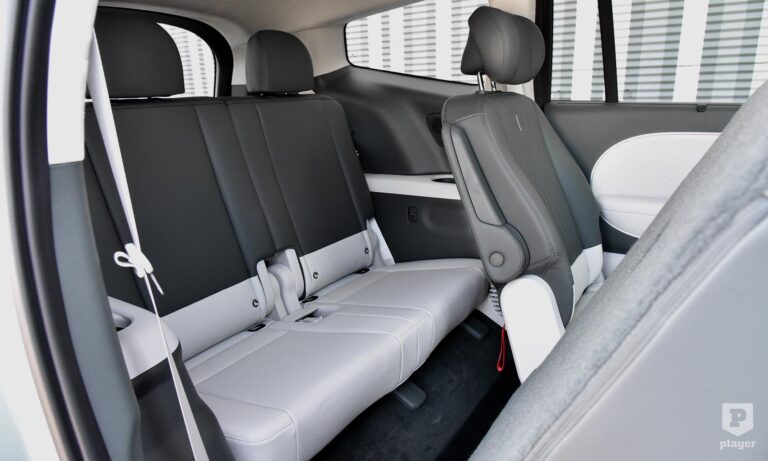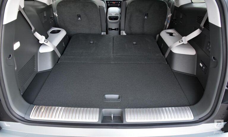 Nem meglepő, hogy egy ekkora karosszériában tágas utasteret alakítottak ki, de az Ioniq 9 annál is tágasabb, mint amilyennek gondoltuk volna. Az ülések közt simán lehetne mászkálni, mint egy kisbuszban, még három üléssor mögött is 338 literes a csomagtér, a harmadik sort lehajtva 908 litert használhatunk ki, és elöl is van csomagtartó a töltőkábeleknek. Igazi prémium megoldás, hogy a két hátsó üléssor motorosan, gombnyomásra hajtogatható le vagy fel.
