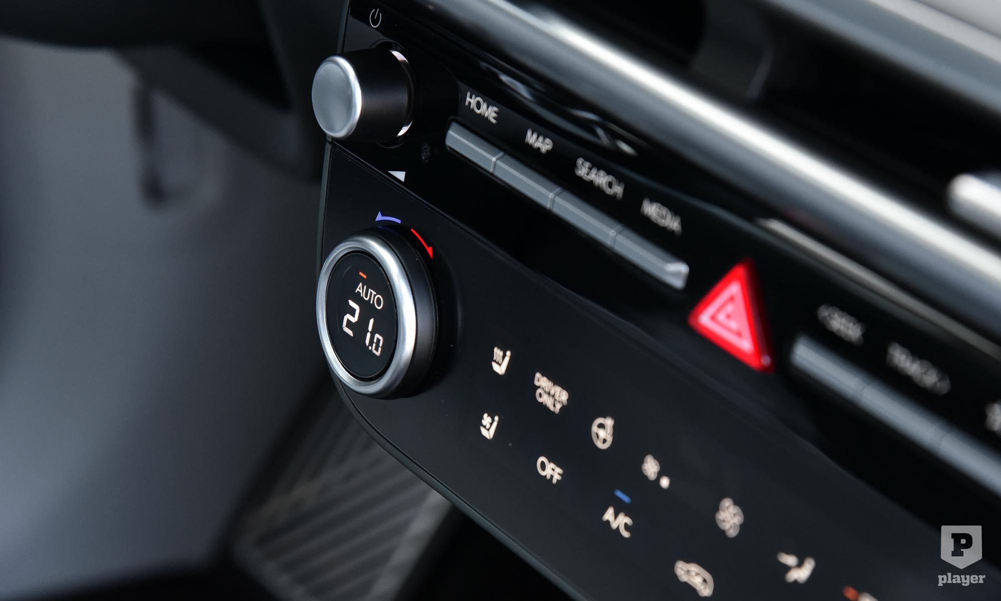 A startgombot és az irányváltót a jobb oldali bajuszkapcsoló alá rejtették, mindennek saját kapcsolója maradt, de a dupla 12,3 colos ívelt kijelző menüjéből is előhívhatunk további funkciókat. Magas középső konzolján lehet váltani az országúti és off-road üzemmódok közt, és egy vezeték nélküli telefontöltő is került ide.
