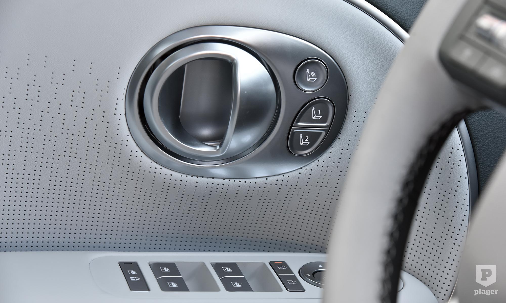 Az első ülések közti könyöklő sínen csúsztatható, és a fedele hátulról is nyitható, hogy a hátsó utasok is elérjék. Jobb első ülését hátulról is előre lehet tolni a nyújtózkodó lábtér érdekében, az első ülések hátuljára szerelt USB-csatlakozók akár 100 wattal tölthetik a telefonokat, és a műszerfalon egy UV-sterilizáló rekesz is van.