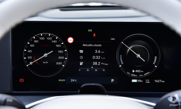 Felfüggesztése nem légrugós, de finoman csillapítja az útegyenetlenségeket, miközben hatékonyan haladunk előre. A fogyasztása könnyedén 25 kilowattóra körül tartható száz kilométeren, ami azt jelenti, hogy a valóságban is 480 kilométer fölötti a hatótávolság. A 800 voltos rendszer villámgyorsan tölthető, 350 kilowattos töltőn 24 perc elég a 80 százalékhoz.