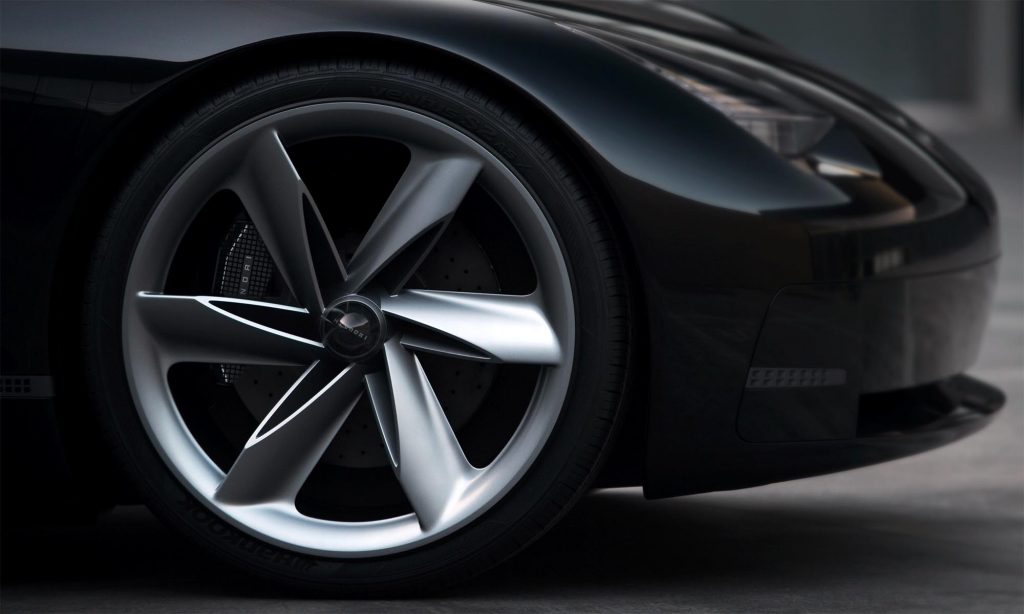 Az elektromos autó formája egy kicsit a Porsche és a Tesla modelljeit juttatja eszünkbe, és nem véletlenül,