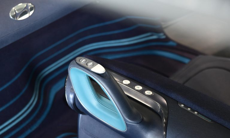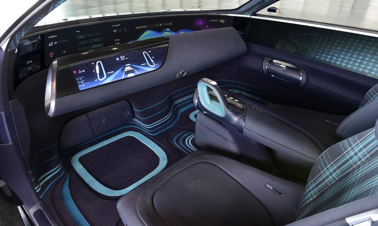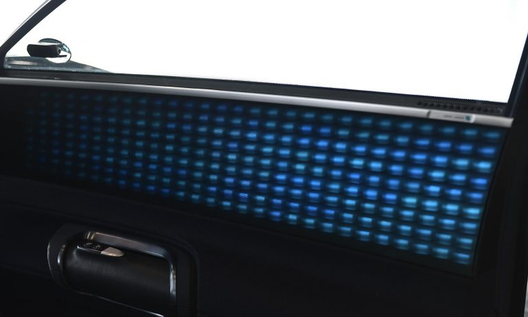 A szemközt nyíló ajtókon át megközelíthető utastér is olyan futurisztikus, mint ami egy tanulmányautóhoz illik.