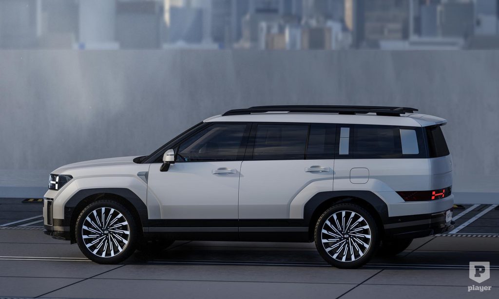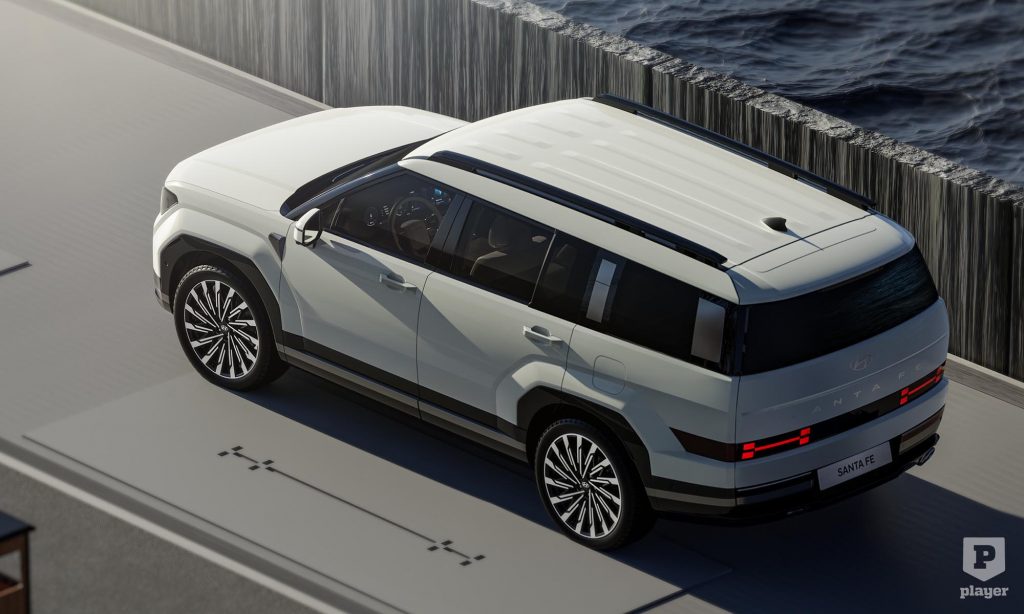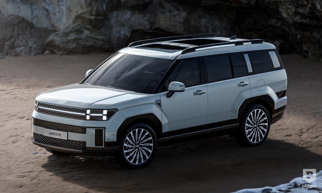 Az első képek alapján a vadonatúj Santa Fe elég látványos jelenség lett, az elődje ívelt vonalai határozott szögletes éleknek adták át a helyüket, amiket egy korábbi elektromos tanulmányautó, az Ioniq 7 előzetesének számító Seven Concept stílusa inspirált.