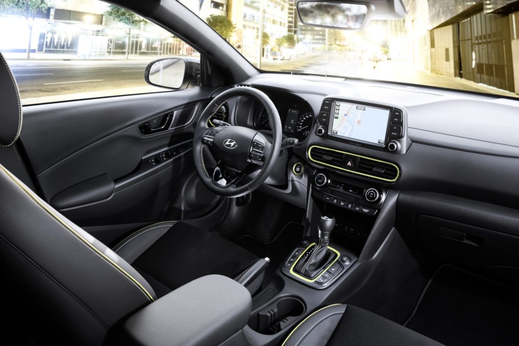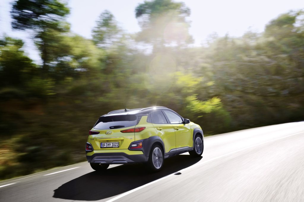 Formatervben talán a Kona a legerősebb: a keskeny, futurisztikus első lámpák, a kaszkádos hűtőrács dinamizmust és erőt sugároznak, de a kerekek fölötti fekete betétek is megtörik a konvenciókat, ahogy a hátsó rész is karakteresebb lett.