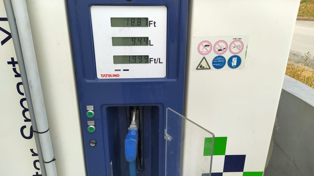 Végül rájöttem: ha a kúton nincs is mérőműszer, a kocsiban van! Így adagonként spriccelgettem a folyadékot a tankba és ellenőrizgettem a gyújtás ráadásával, hogy kábé mennyi került bele. Pont, amikor úgy döntöttem, ez már úgy öt-hat liter lesz, kikiabált a kutas lány az ablakon, hogy HAT ÉS FÉL, mert mégiscsak látta a számot. Szóval befejeztem, bementem, pironkodva röhigcséltem kicsit, fizettem, csináltam pár fotót és eljöttem.