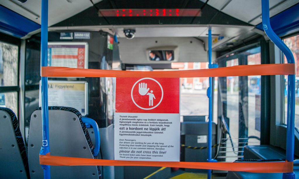 teljesen meg is tiltották az első ajtók használatát a buszokon, és kordonokkal tartják távol a sofőröket az utasoktól.