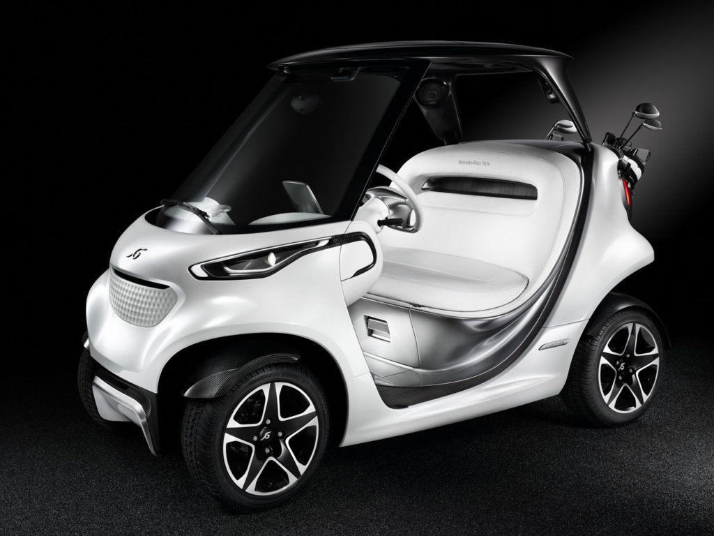 Az biztos, hogy feltűnőbb és sportosabb a kategóriatársainál a Mercedes-Benz Garia Golf Car, már ha lehet ilyet mondani erre a rövid (2,35 méter), keskeny (1,2 méter) és magas (1,72 méter) járműre. A könnyűfém kerekek feletti sárvédők és a tető is szénszálas anyagból készült, a lámpák pedig LED-esek, hogy azonnal tudjuk, csúcskategóriás golfautóról van szó.