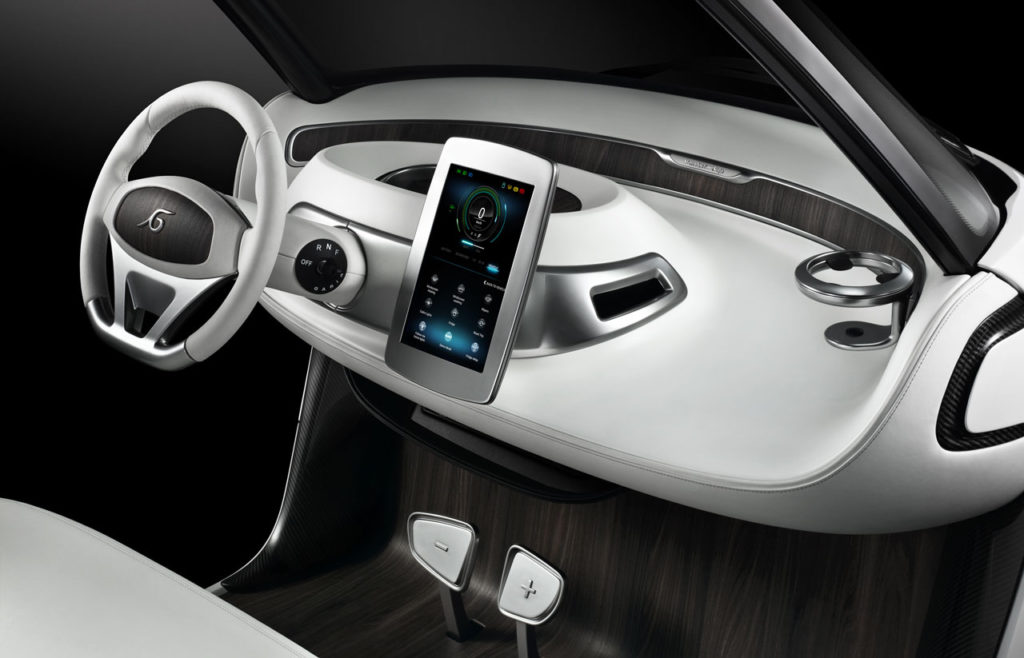 A belső tér sem mindennapi: a műszerfalra egy 10,1 colos táblagép került, ahol a sebesség (ami 30 km/óránál szabályozott) és a hatótáv (ami egy feltöltéssel akár 80 kilométer is lehet) mellett sport és eco üzemmódot is választhatunk, időjárás-alkalmazást böngészhetünk, de a golfpályán is könnyedén tájékozódhatunk egy speciális navigációs rendszerrel.