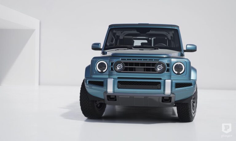 és egy kicsivel kisebb is, mint a Grenadier. Szögletes karosszériáján több a színre fújt elem, amivel egyre inkább a Mercedes G-osztályra hasonlít, és továbbra is meghatározó dizájneleme a kerek fényszóró, újdonság viszont a két plusz fényszóró, amit a hűtőmaszkba rejtettek.