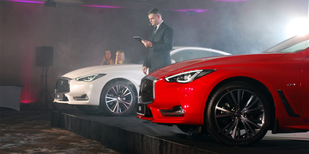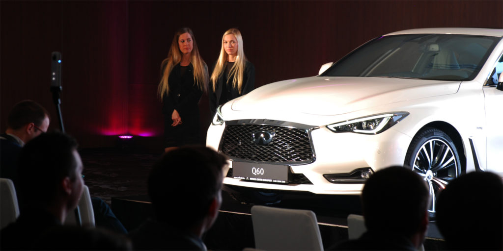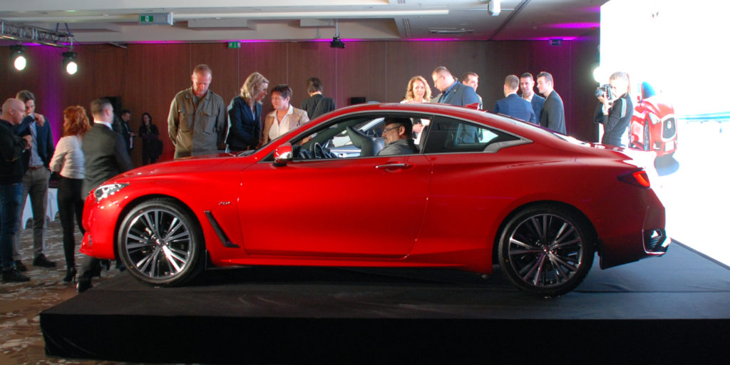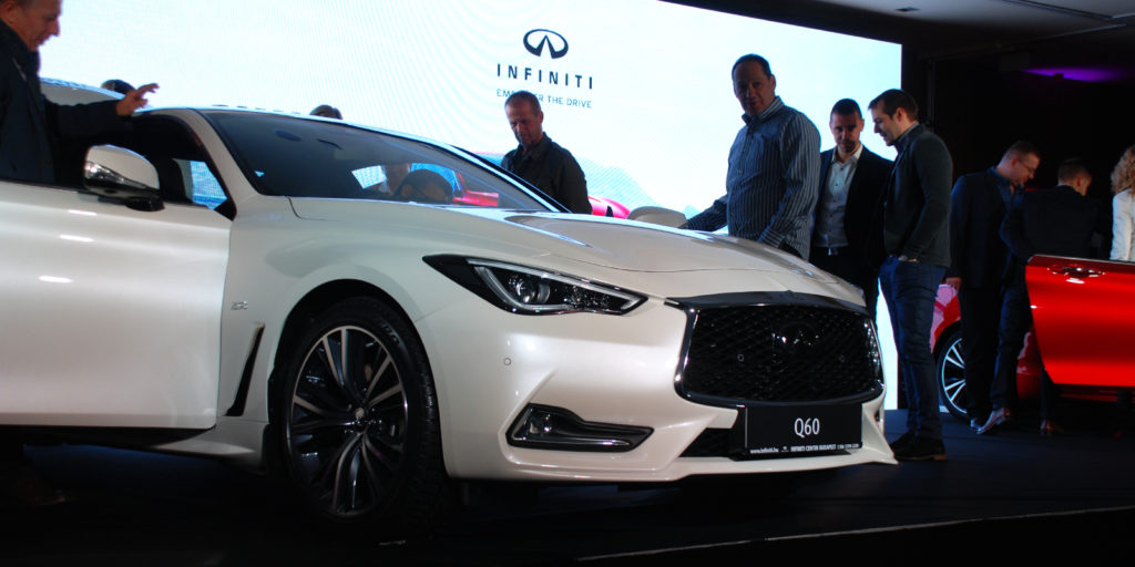 Sajnos egy rendezvényteremben, és nem egy versenypályán mutatták be itthon az Infiniti Q60-ast, és csak azzal vigasztaljuk magunkat, hogy az izgalmasabb, 405 lóerős V6-os biturbóra még várni kell, azt meg valahogy kibírjuk, hogy egy 211 lóerős kupét állni látunk.