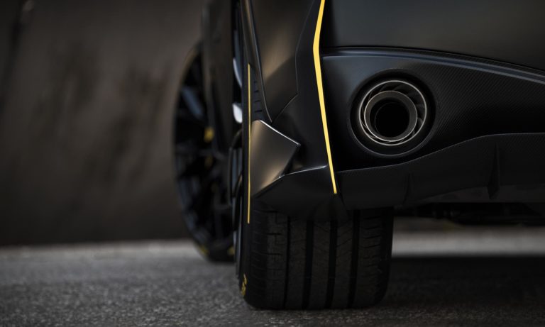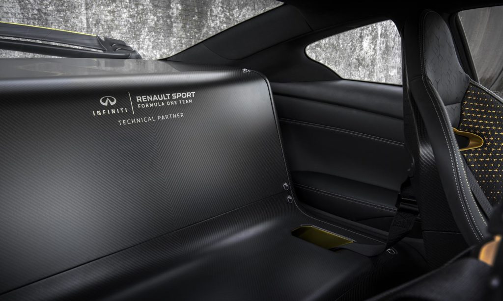 mint az előző évi tanulmányautó, amiről feltűnőbb légterelők, nagyobb hátsó szárny és még több kontrasztos sárga színű él gondoskodik. A szénszálas anyagból készült aerodinamikai elemeket a Renault Formula–1-es csapatával együtt fejlesztették.