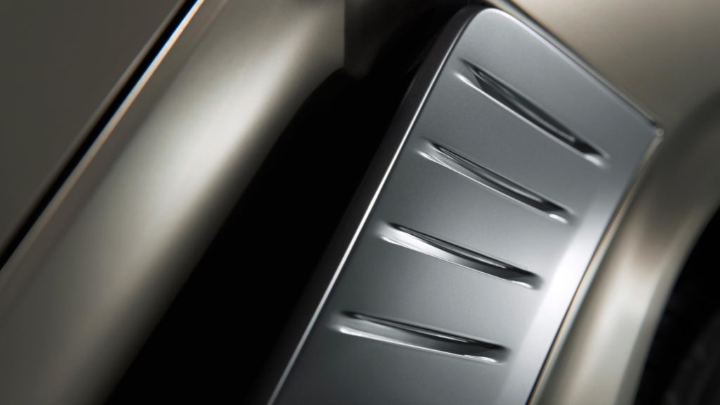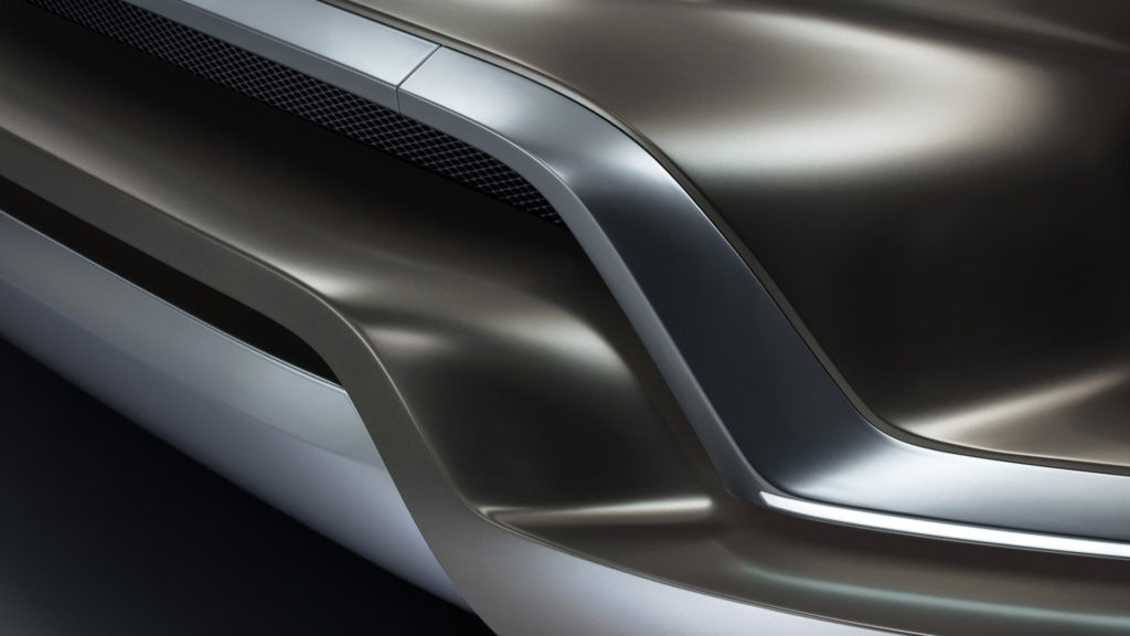 Már csak a méretei miatt is tekintélyes jelenség a Monograph, hiszen öt méter hosszú, és még behajtott tükrökkel is két méter széles. De a formája teszi igazán emlékezetessé, hiszen mellette az Audi Q7 és a BMW X5 is konzervatívnak tűnik. A hullámzó vonalak ellenére nagyon masszívnak néz ki, mintha tényleg egy tömbből faragták volna ki.