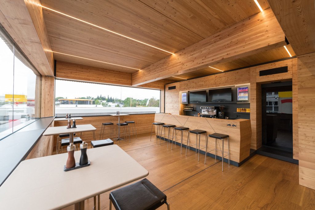 A megújult motorhome tulajdonképpen egy különleges faház. A tágas, háromszintes, tetőteraszos Energy Stationnel próbál sokkolni a Red Bull a hétvégi Spanyol Nagydíjon.
