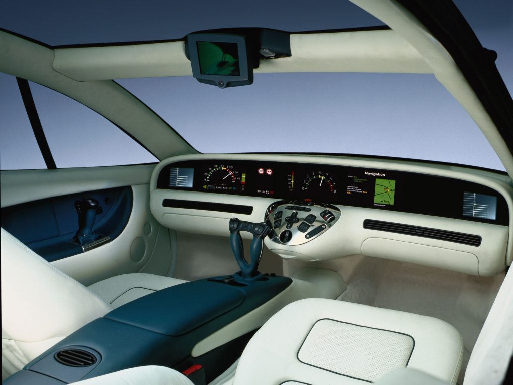 A felfelé nyíló ajtóról persze rögtön látszik, hogy ez egy tanulmány, de az 1996-os F200 Imagination fényszórói már a két évvel későbbi S-osztályt mutatják, a nyúlánk forma és ívelt tetővonal pedig a kupéváltozatán, a CL-en vált valóra. A műszerfala mai szemmel nézve elég megmosolyogtató, ahogyan az is, hogy kormánykerék helyett botkormányt képzeltek el az irányítására.
