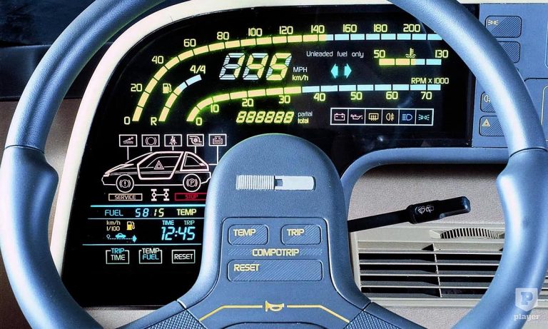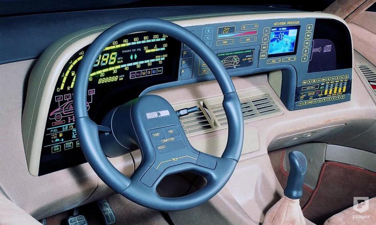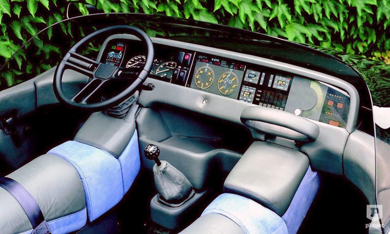 A futurisztikus hangulat az utastérben folytatódik, ahol a műszerfal mindent felvonultat, amit a nyolcvanas évek derekán el tudtak képzelni a jövőről.