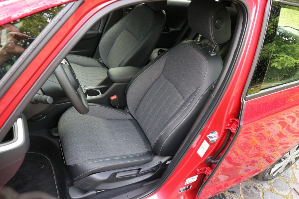 Hogy lehet ez ekkora belül? Elöl kompakt egyterűs a térérzet, az új, osztott A-oszloppal a panoráma szinte mint egy Citroën Picassóban. A sima, tagolatlan műszerfal és a kétküllős, légies kormány, az egy, keskeny vonalba rendezett információs sáv (virtuális műszeregység és érintőképernyő) s növeli a térérzetet. Csak az irdatlan váltókar és a jól kezelhető, hál'isten továbbra is fizikai gombokkal, tárcsákkal, saját kijelzőkkel rendelkező klímakonzol tűnik furcsán nagynak, pedig éppen ezek akkorák, mint amekkorák egy átlagos autóban is szoktak lenni.