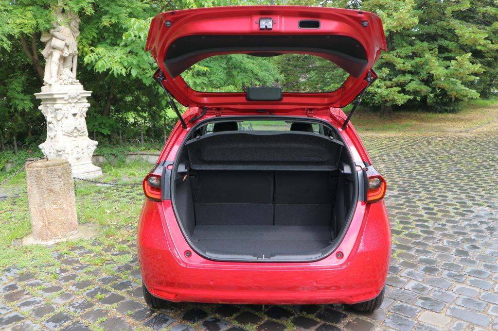 A hátsó sorban a fejtér is, lábtér is megfelelő, inkább kompakt autós, mint kiskocsis méretű. Az ülőlap továbbra is felcsapható, ez a páratlan Honda-okosság szerencsére az új Jazzben is tovább él. A csomagtartó literre kimondottan kisautós, de variálhatósága, padló alatti KRESZ-csomag-rejtő ürege miatt nagyobbnak tűnik katalógusértékénél.