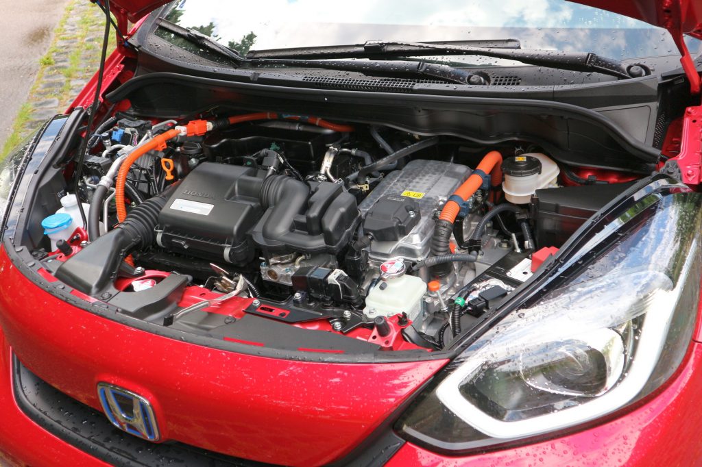 A Honda Jazz hibridrendszere elviekben ugyanaz, mint a CR-V hajtáslánca. A kocsi orrában van egy négyhengeres, másfél literes, Atkinson-ciklusú benzinmotor, amely csak egy szűk fordulatszám-tartományban hatékony, de ott nagyon. Ez a motor egy villanymotor-generátor egységet meghajtva képes elektromos energiát termelni, amivel egyrészt tölthető a lítium-ion akkumulátor, másrészt hajtható a másik villanymotor, amely 109 lóerős és 253 Nm nyomaték leadására képes.