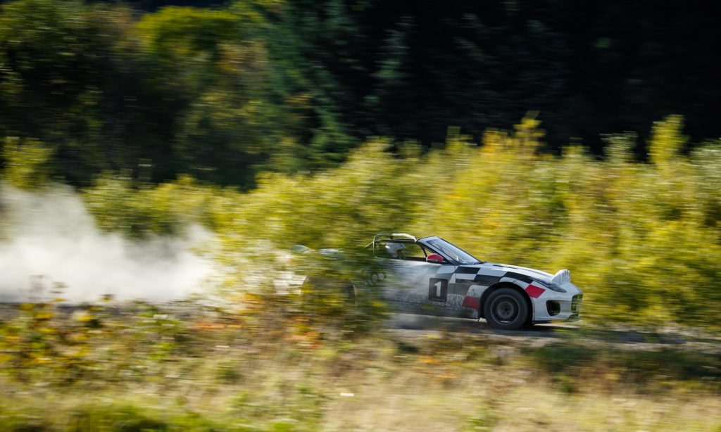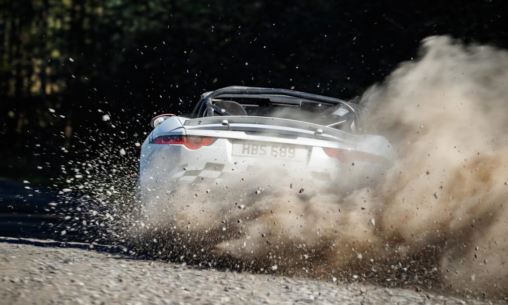 A szellős Jaguar versenyautót a dél-walesi murvás pályákon próbálták ki, és bár nem sok értelmét látjuk egy nyitott autónak egy poros szakaszon, de kétségkívül látványos a dolog. A Jaguar nem tervez többet építeni belőle, de a két prototípus több eseményen is feltűnik majd.