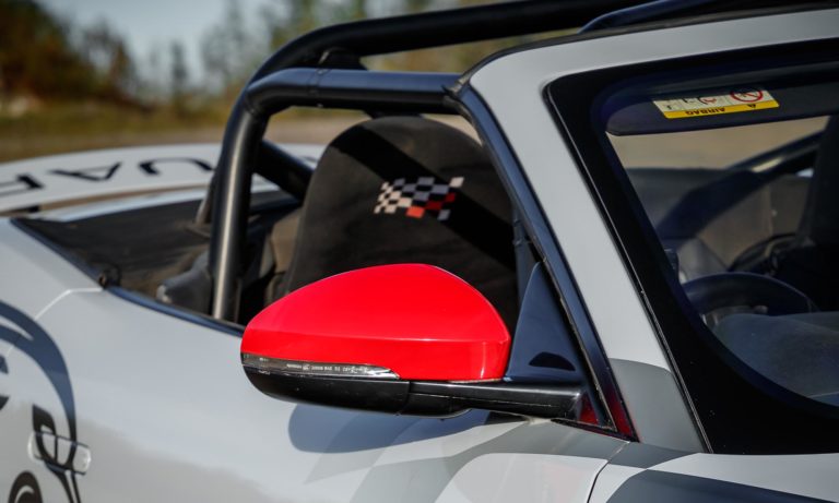 bukókeretet, kagylóüléseket, hatpontos biztonsági öveket, tűzoltó készüléket és még egy csinos lámpasort is a motorháztetőre. A szabályoknak felel meg a motorja is, a kétliteres, négyhengeres turbós benzines, ami 300 lóerőre képes.